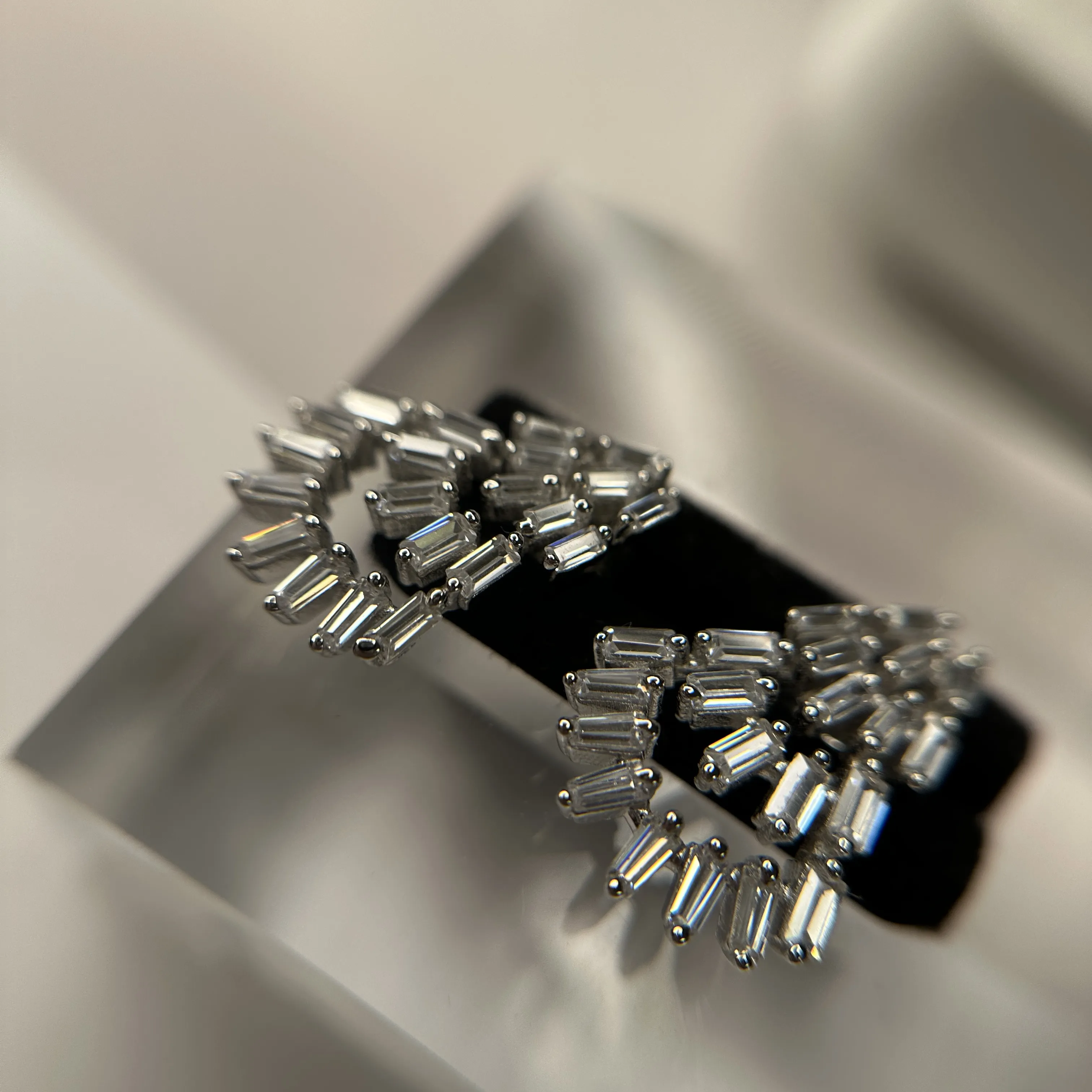Bijuterii cercei din argint cu pietre transparente. Inchizatoare cu surub.