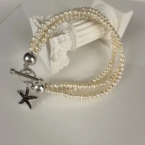 Bratara cu perle naturale de cultura si steluta de mare din argint.