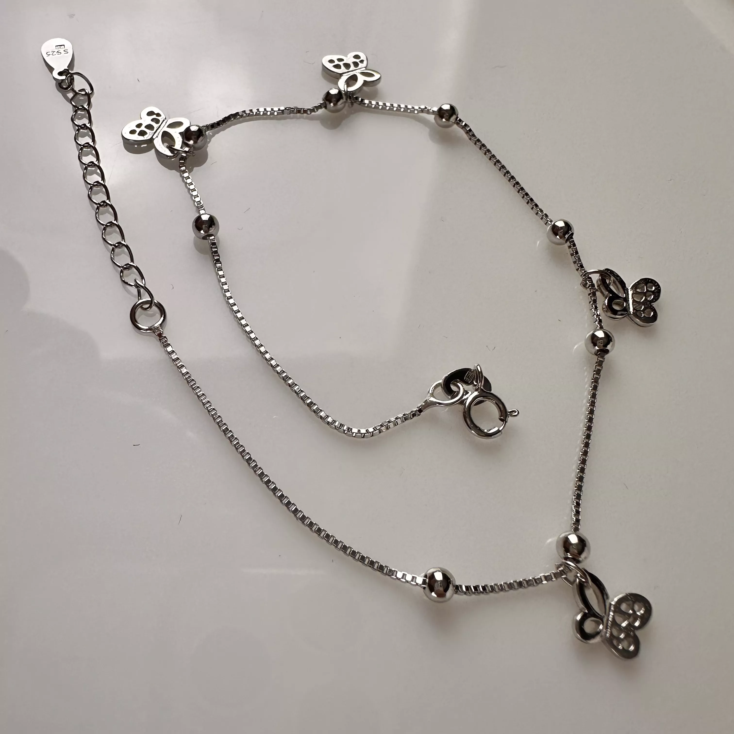 Brățara de glezna cu fluturasi din argint cu apect de aur alb.