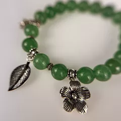 Bratara elastica cu pietre semipretioase flourit si pandantive din argint: frunza, aripa.
