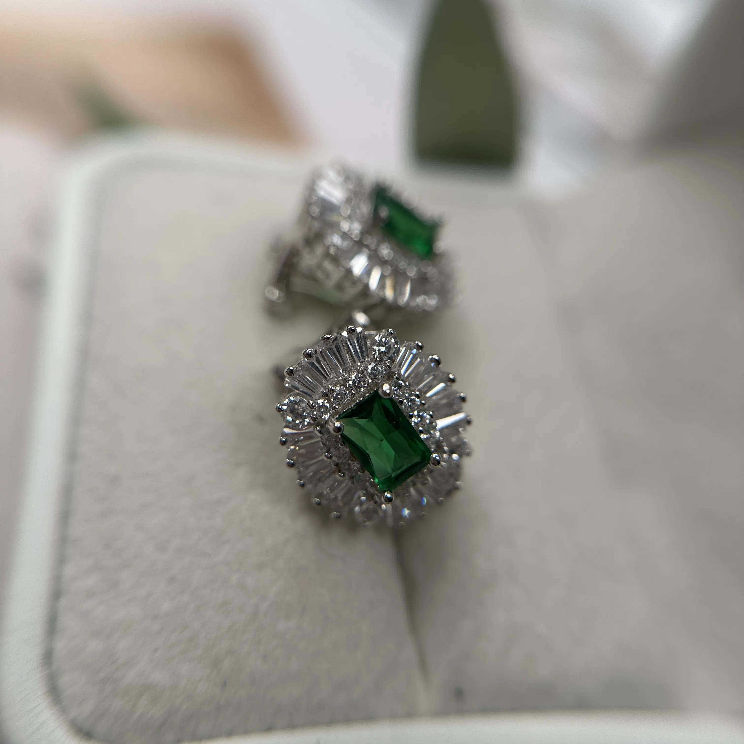 Cercei din argint cu inchizatoare tip omega si piatra verde.