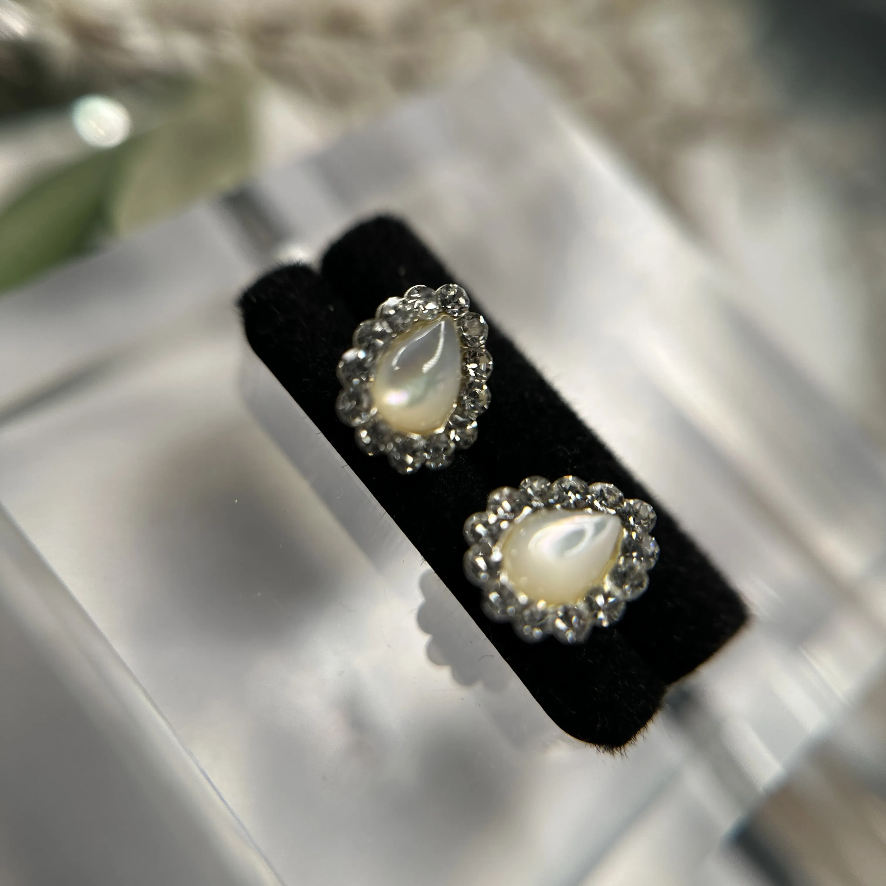 Cercei din argint cu sidef alb in forma de picatura. Inchizatoare cu surub.