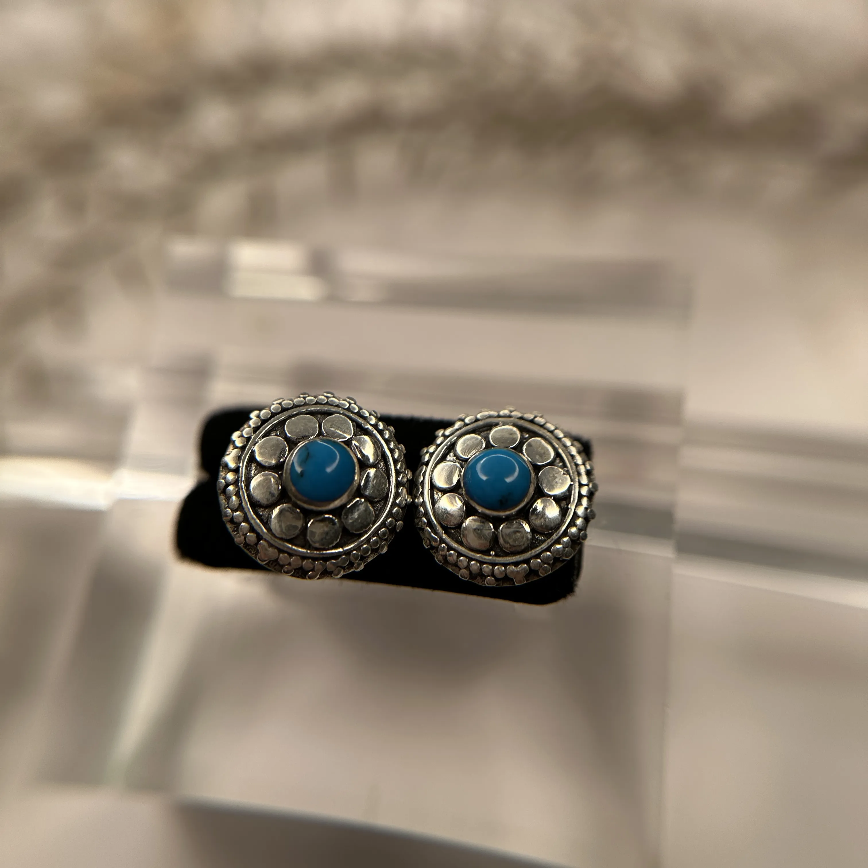 Cercei din argint model banut si piatra turcoaze. Inchizatoare cu surub.