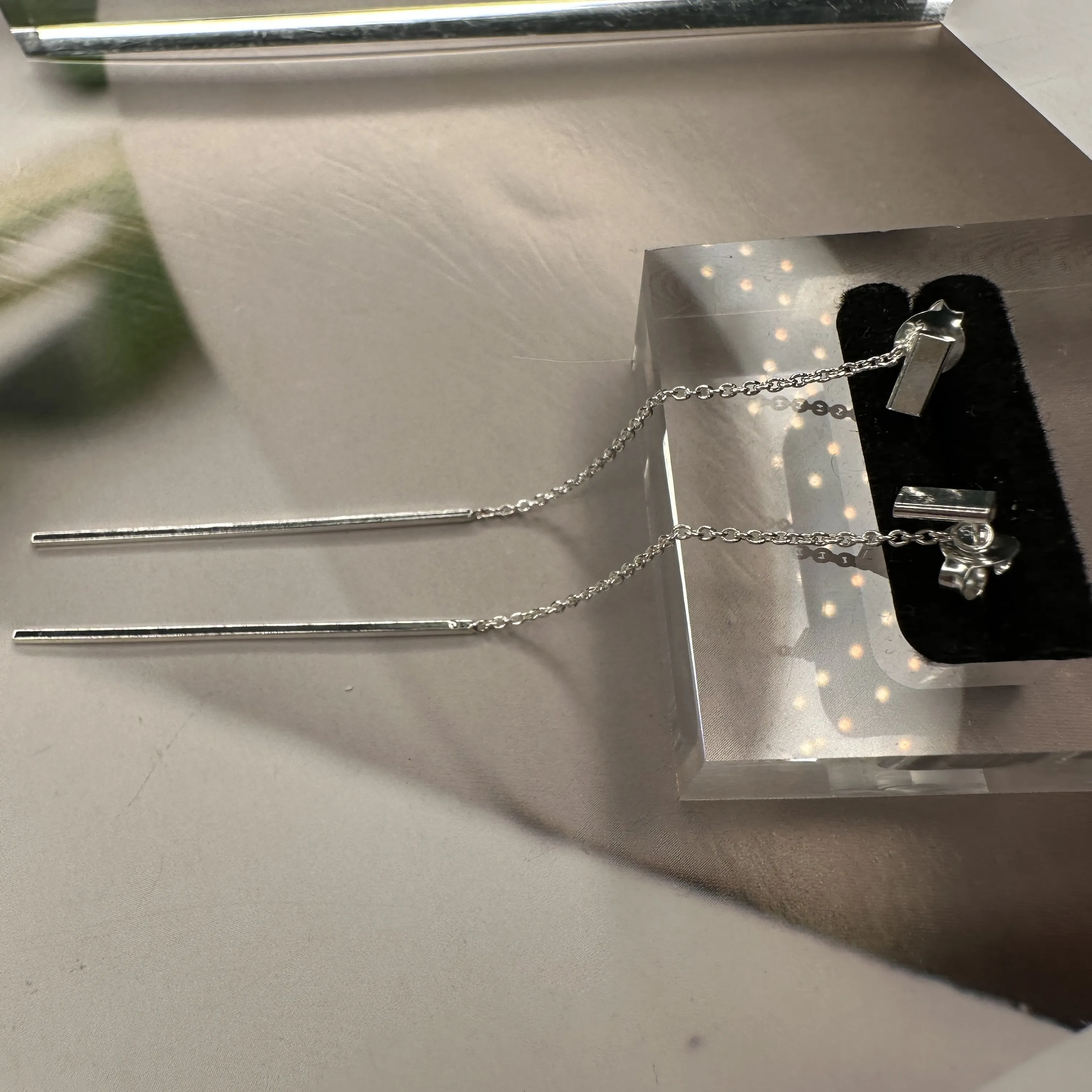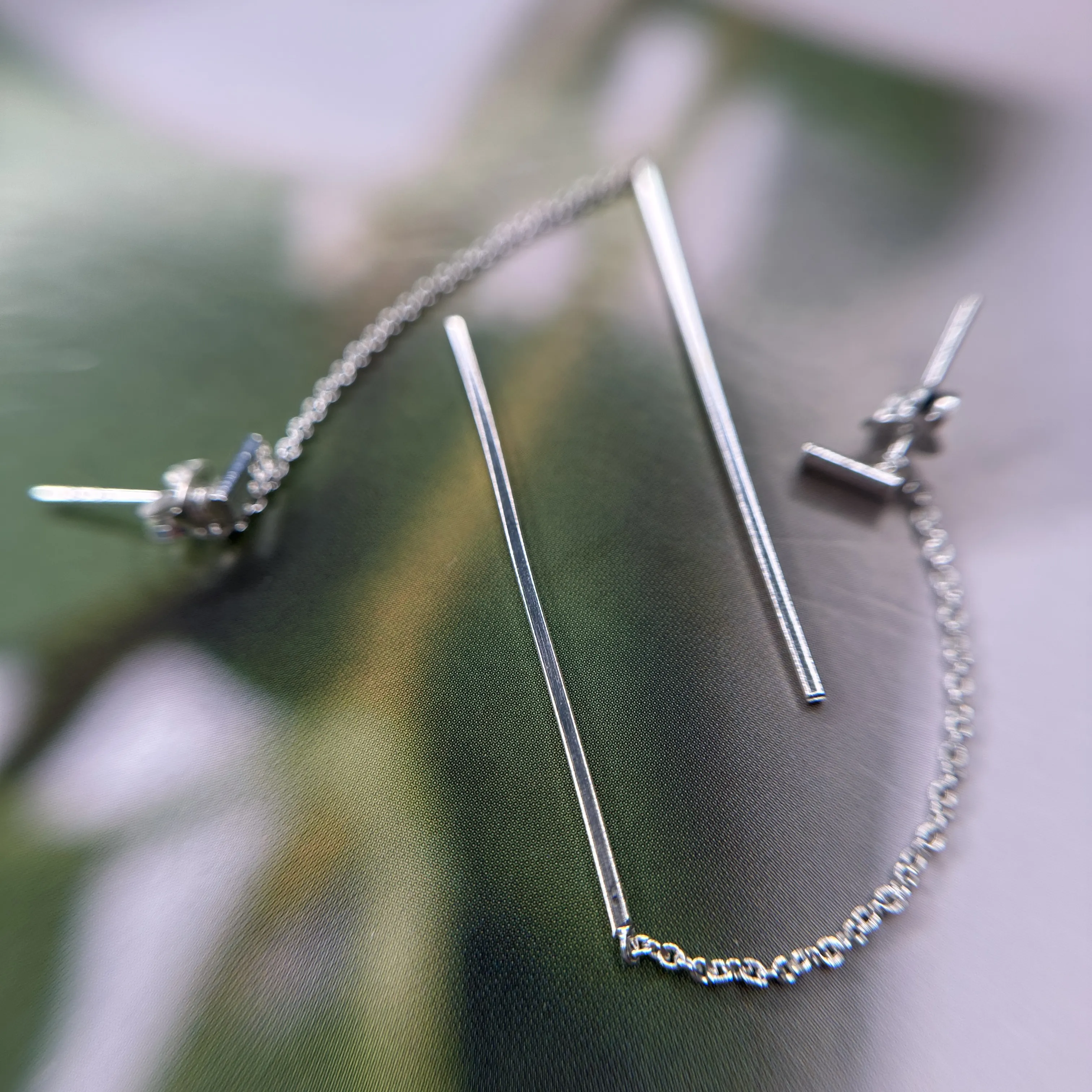 Cercei dubli cu bara si lantisor din argint. Inchizatoare cu surub.