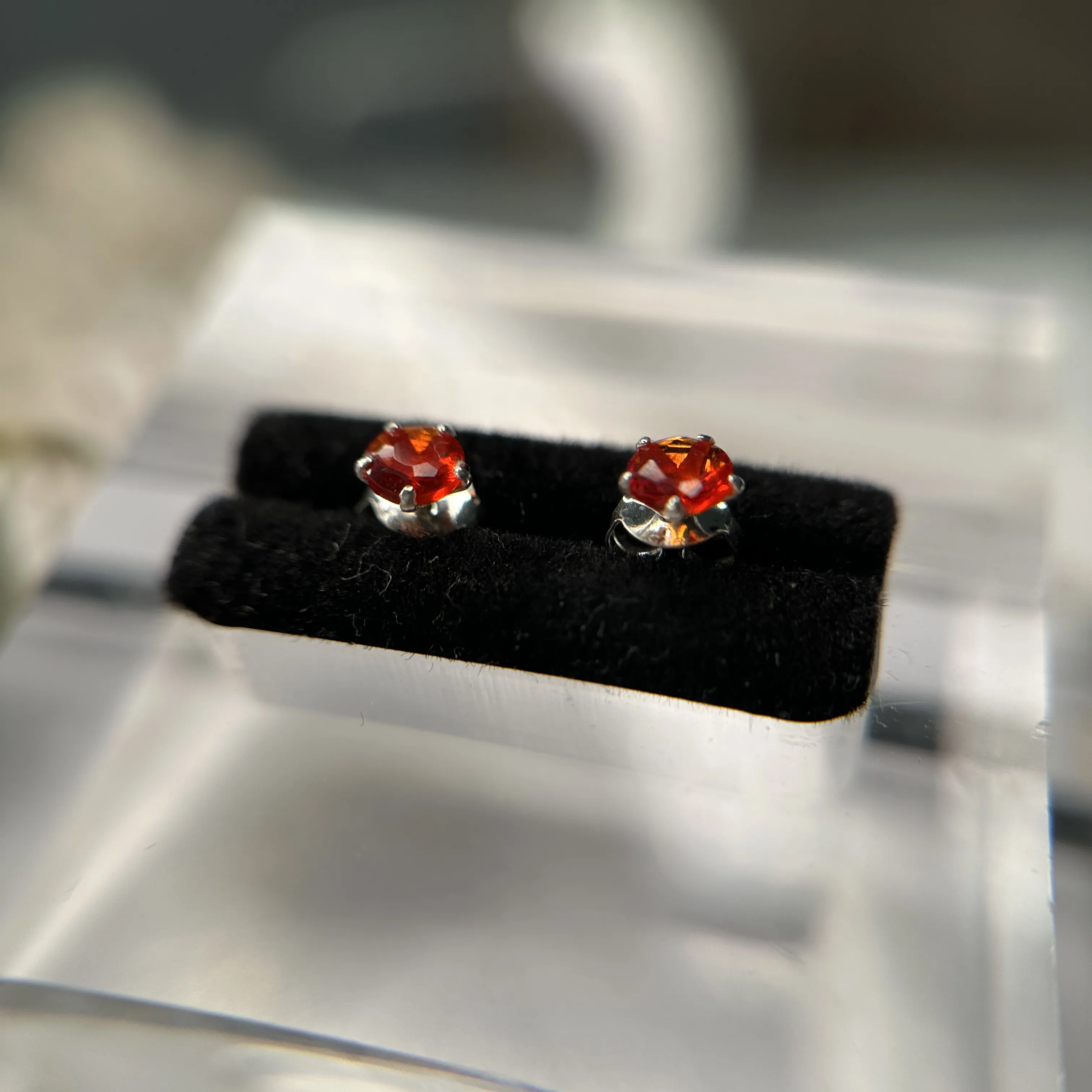 Cercei foarte mici cu zirconia rosu. Inchizatoare cu surub.