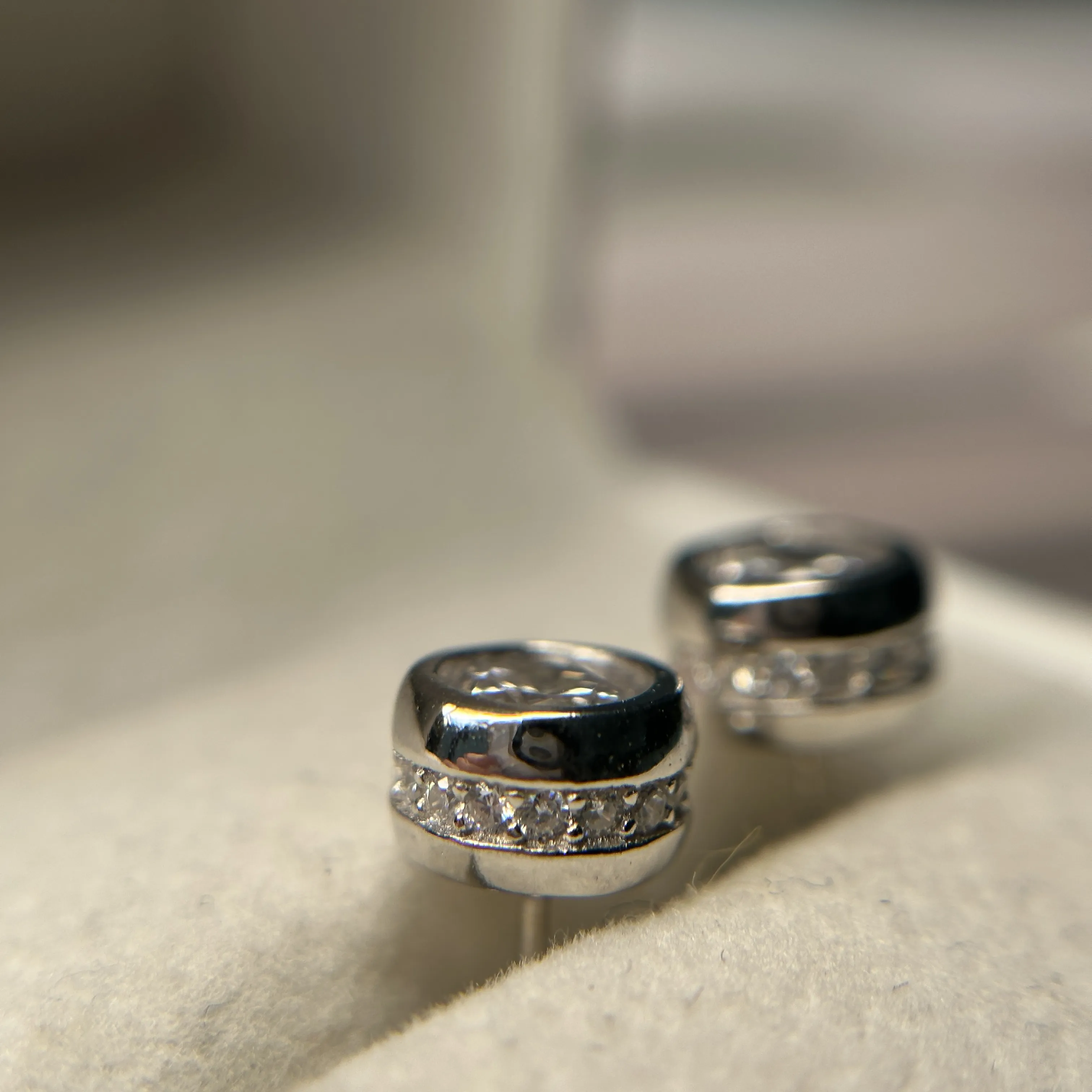 Cercei mici din argint cu pietre de cubic zirconia. Model modern. Inchizatoare cu surub.