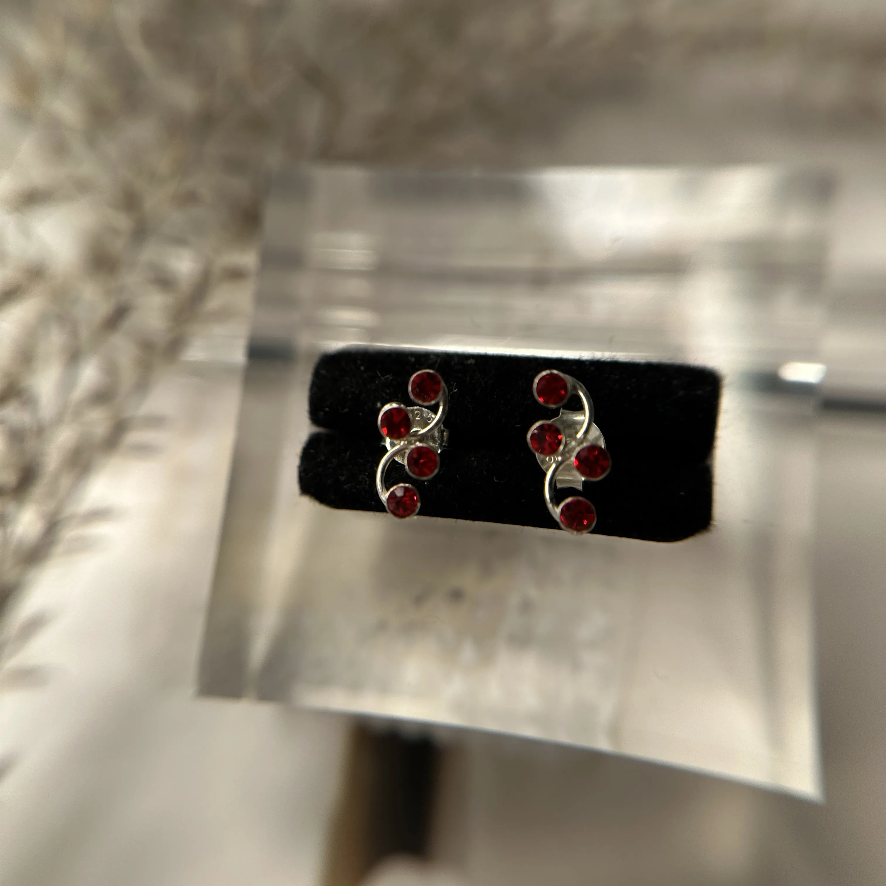 Cercei mici din argint cu cristal rosu. Inchizatoare cu surub.