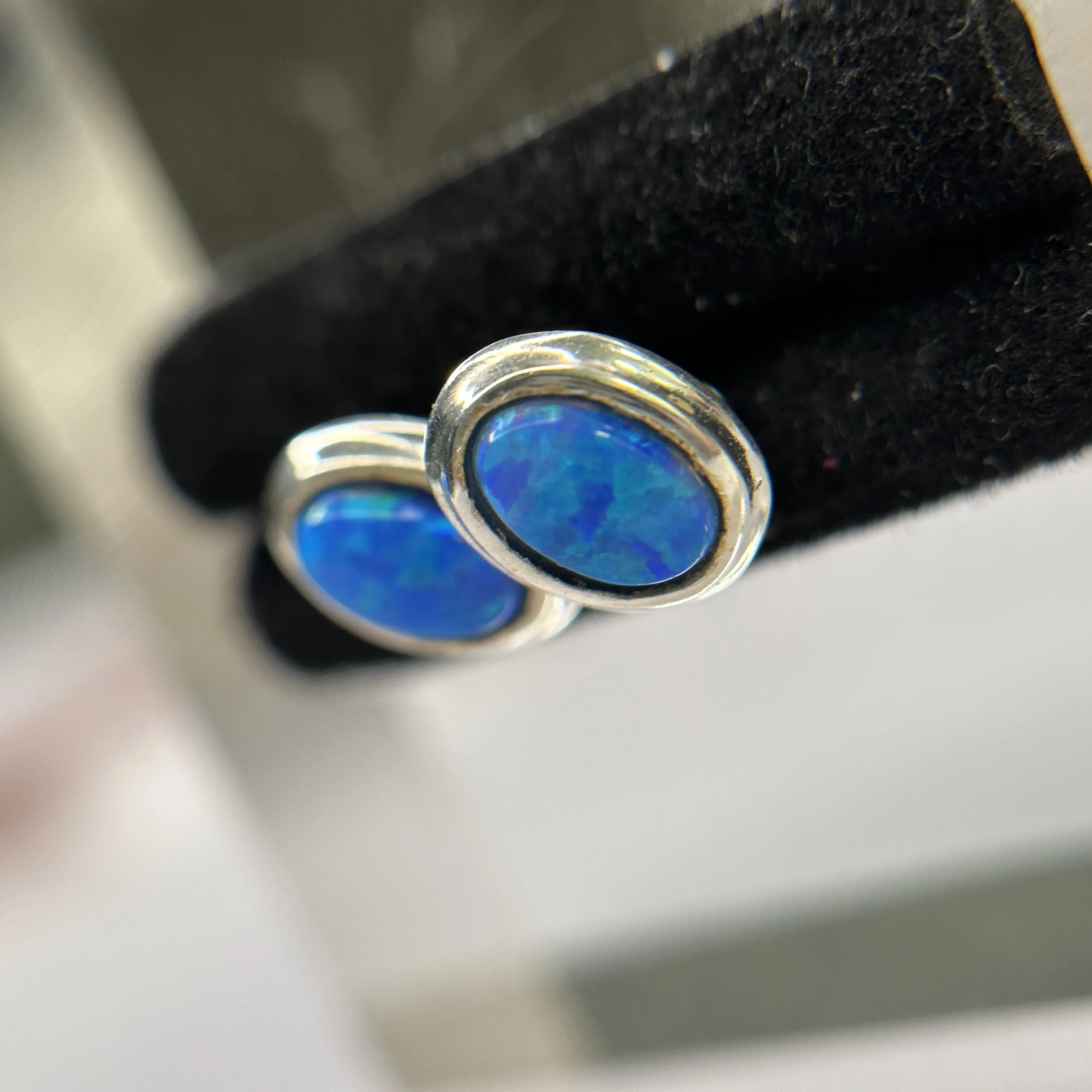 • Cercei ovali din argint cu opal albastru 11-1-i53351B