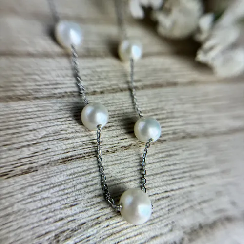 Lantisor din argint cu perle albe de cultura 14-1-i6139