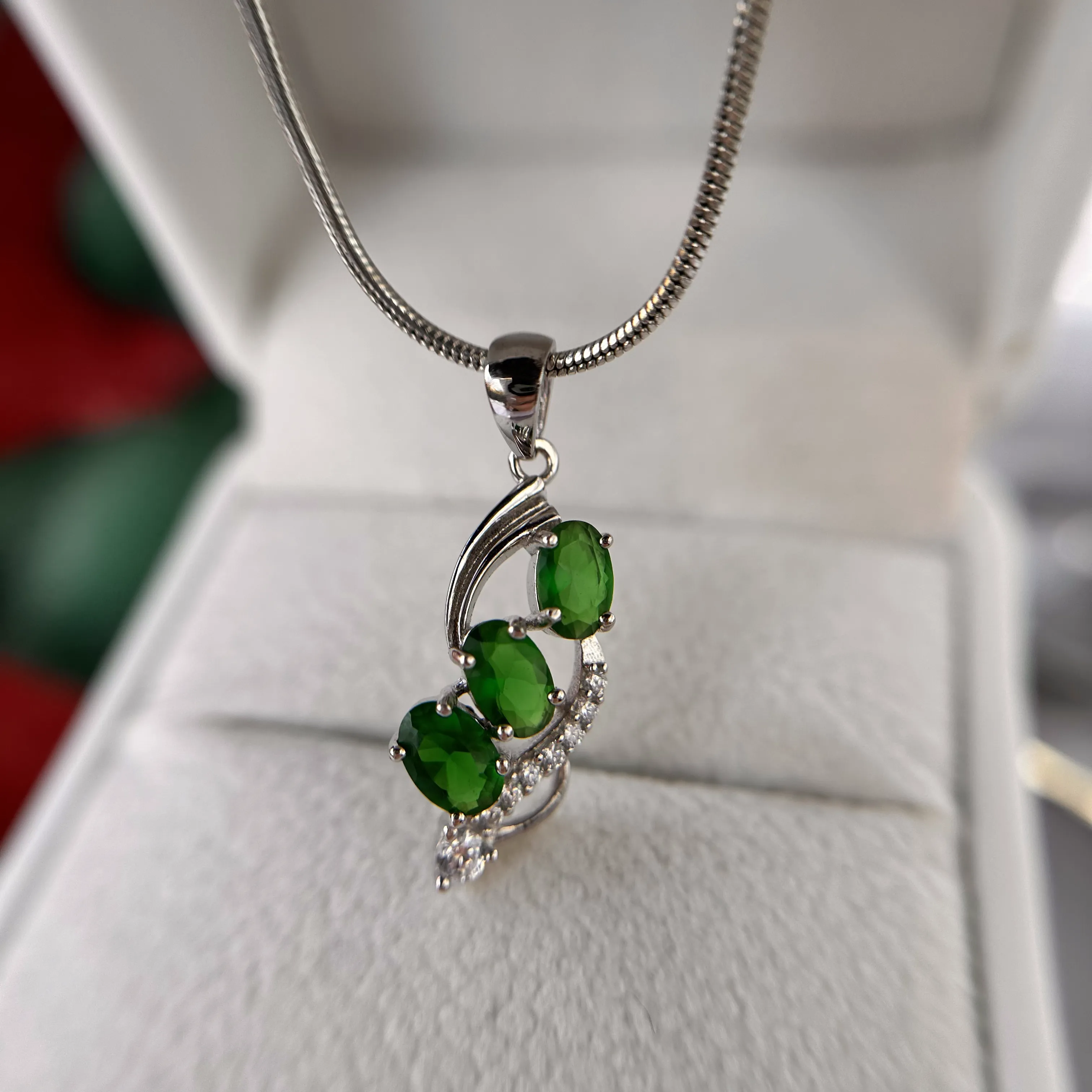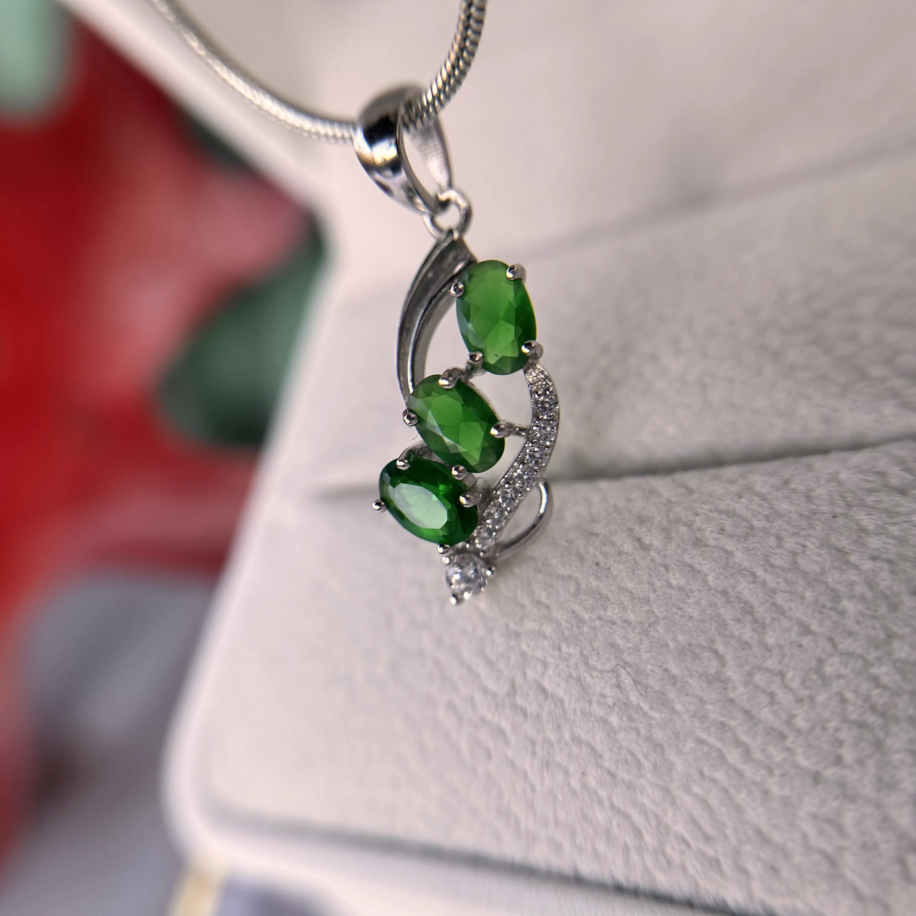 Pandantiv din artgint cu zirconiu verde si transparent. Lantul nu este inclus in pret.
