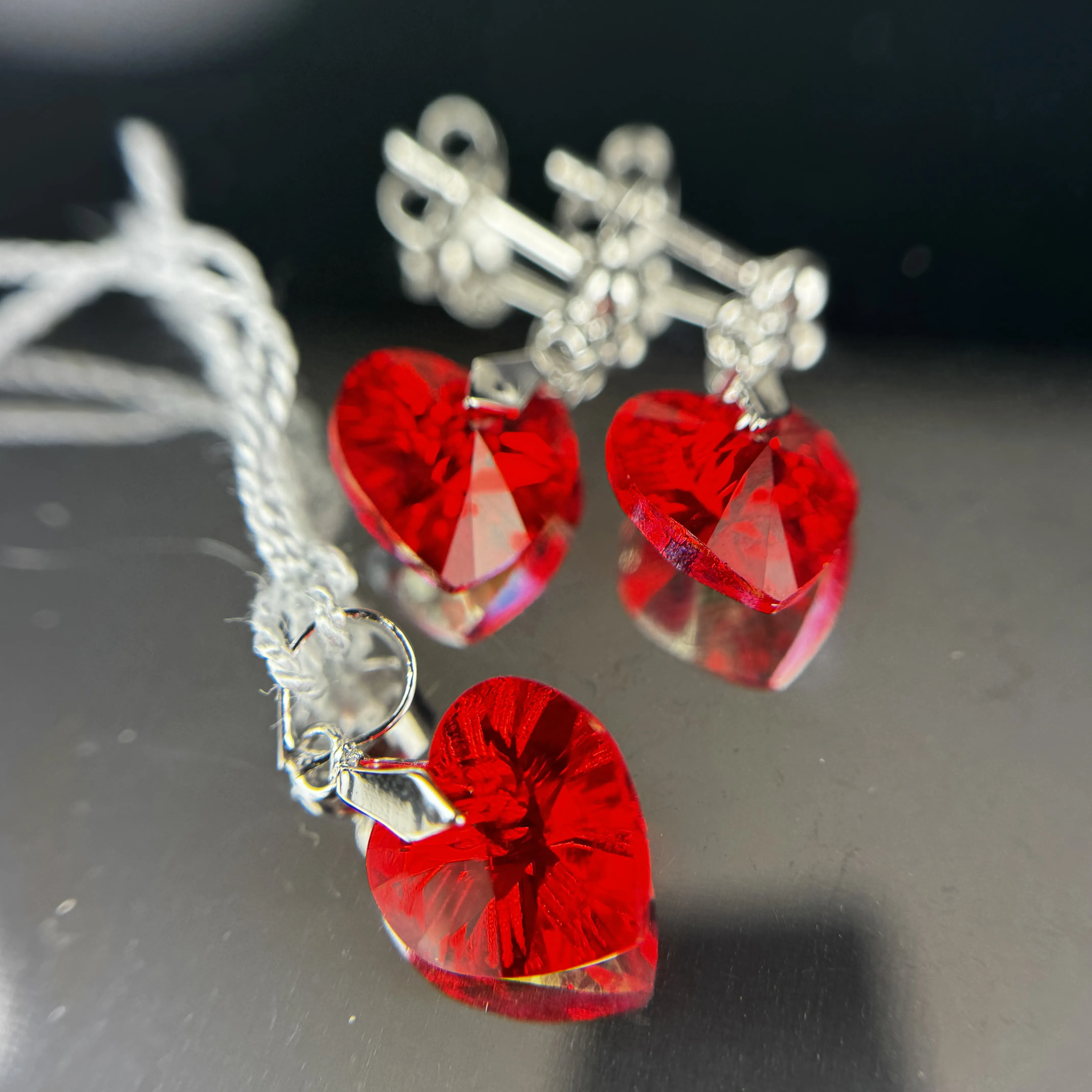 Set argint: cercei si pandantiv inima cristal Swarovski Elements. Inchizatoare cu surub. Lantul nu este inclus in pret. Produsul vine insotit de certificat cu numar de inregistare Swarovski cu holograma.