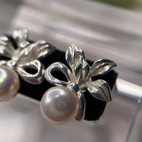 • Cercei floricica din argint cu perla de cultura alba 11-1-i1711