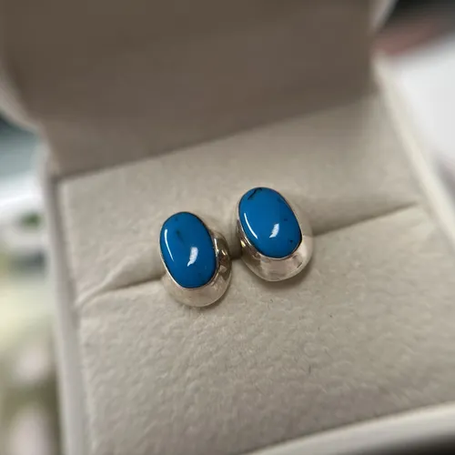 Cercei cu piatra turcoaz din argint. Inchizatoare cu surub.