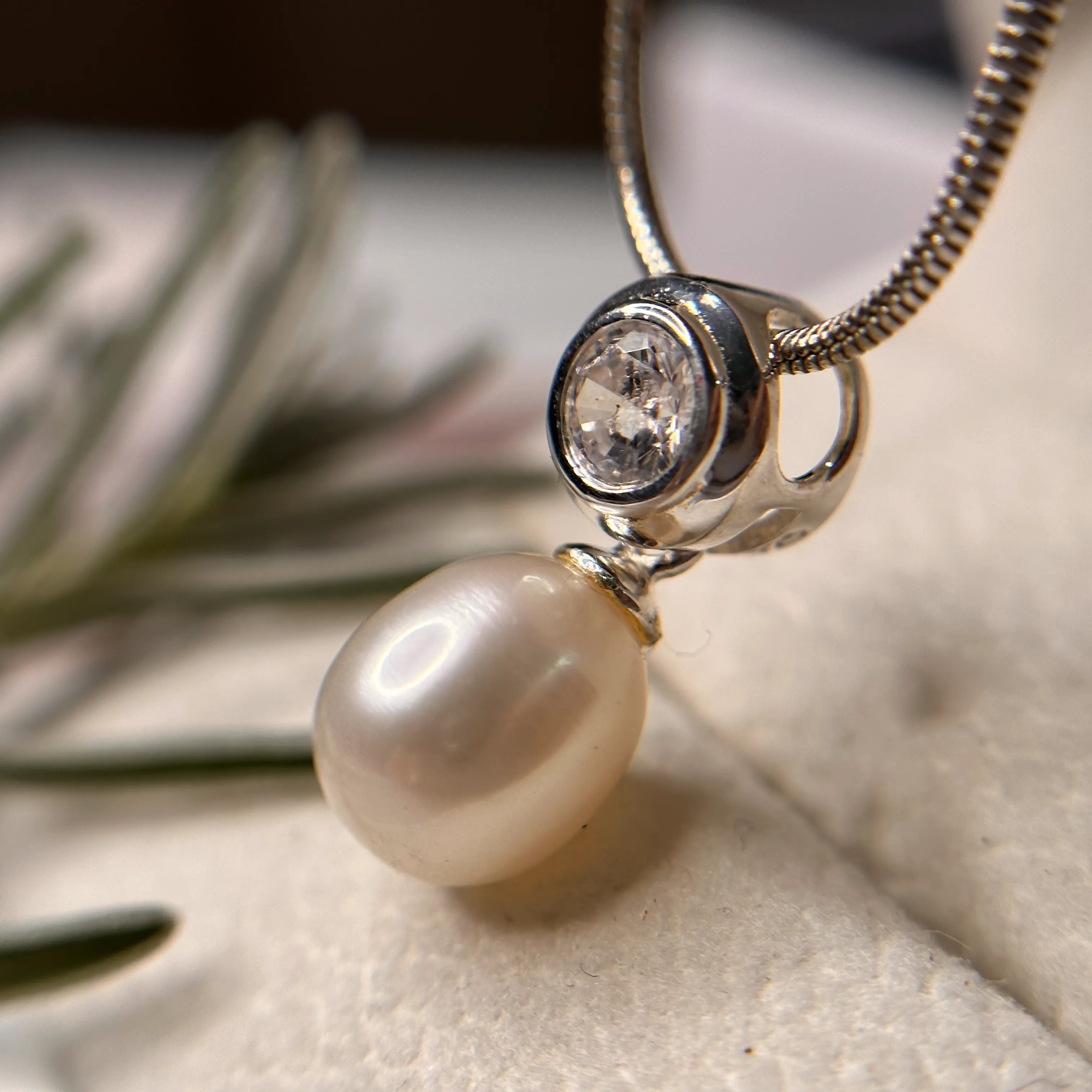 Pandantiv din argint cu perla de cultura si cubic zirconia. Lantul nu este inclus in pret.